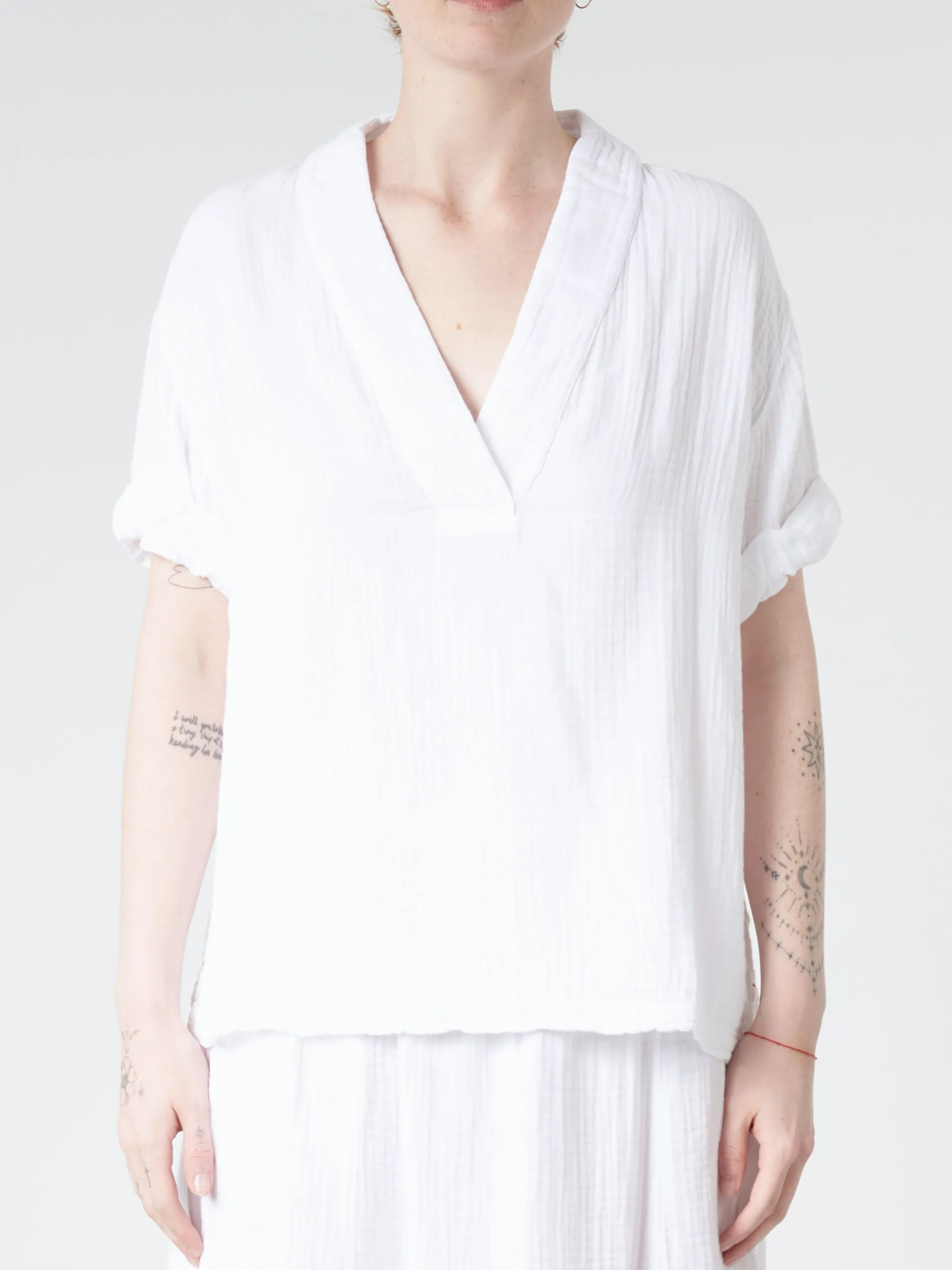 Cut in Chelsea Gauze, this Xírena favourite has a deep v-neck and rolled sleeves for an easy, effortless feel.
