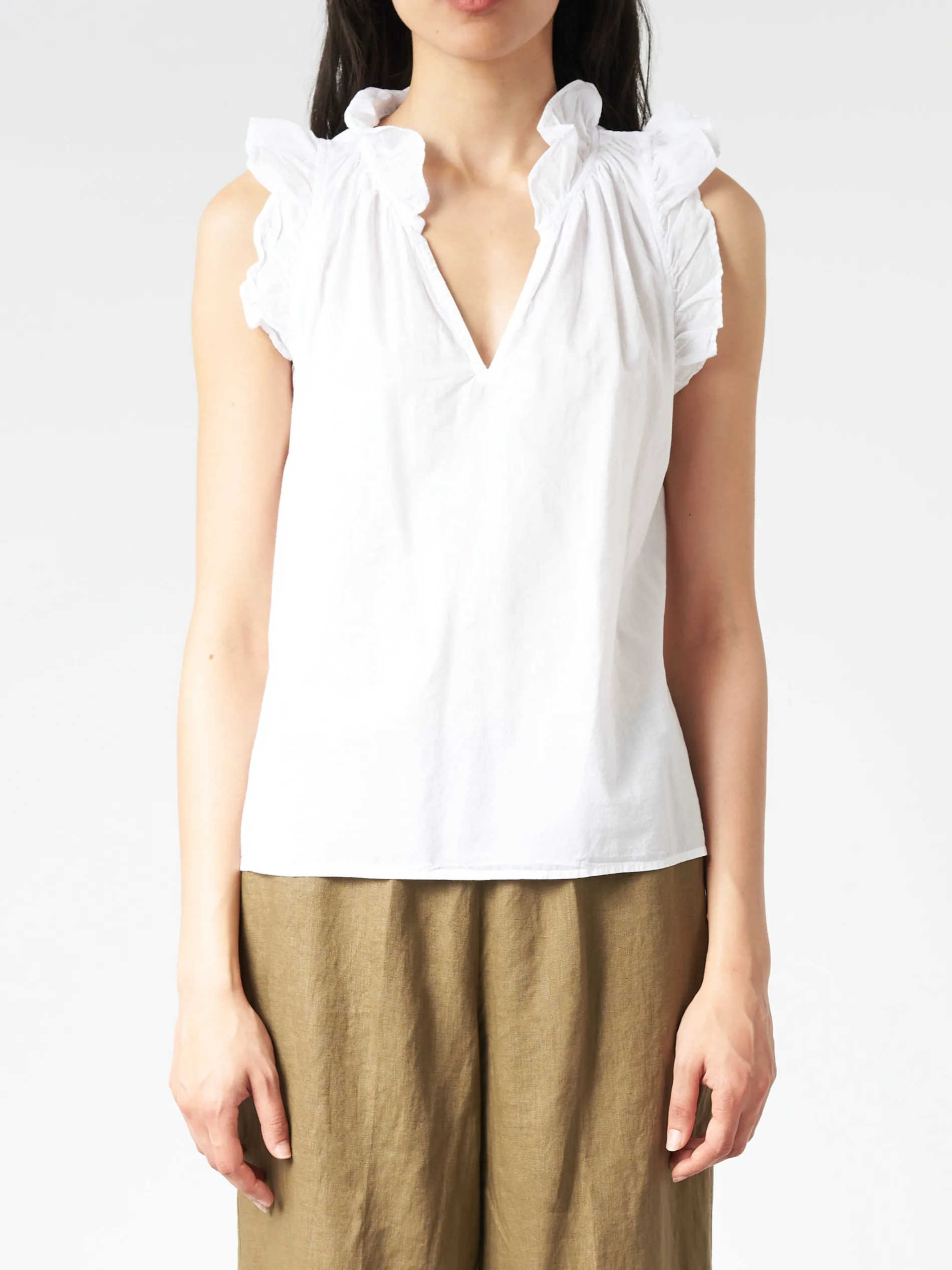 Bex is back this season in Xirena’s classic cotton poplin. This easy popover has a deep V-neck and ruffle detailing.