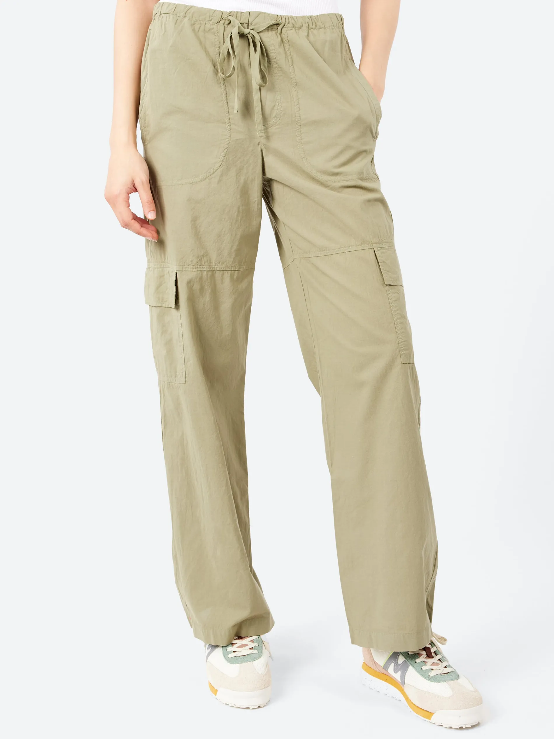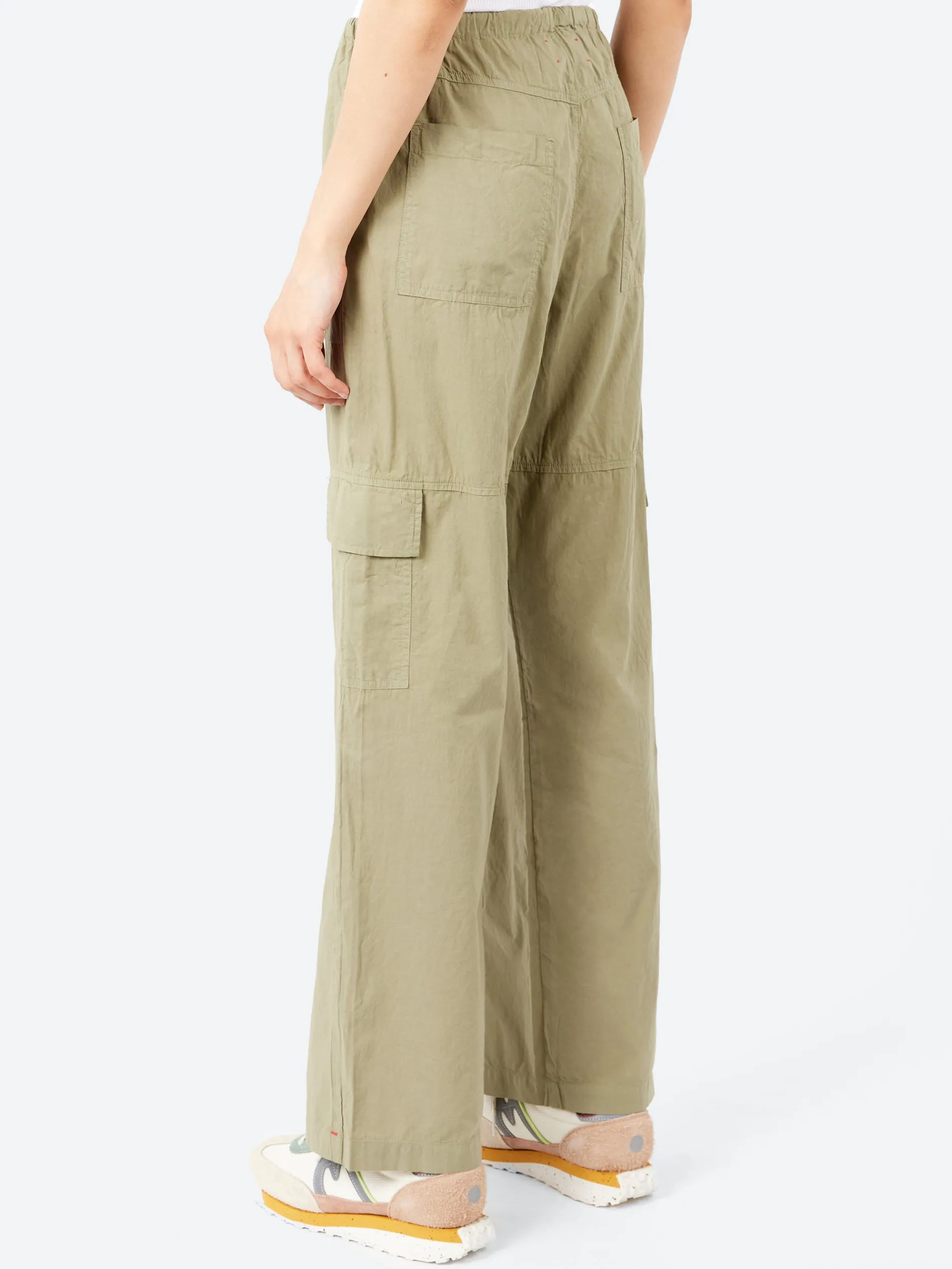 Xirena Cargo Pant is made in a classic lightweight woven cotton poplin for a lived-in look and feel. This classic cargo pant features a straight leg, elasticized drawstring waist, side seam pockets, leg pockets with flap, open back pockets, and back yoke.