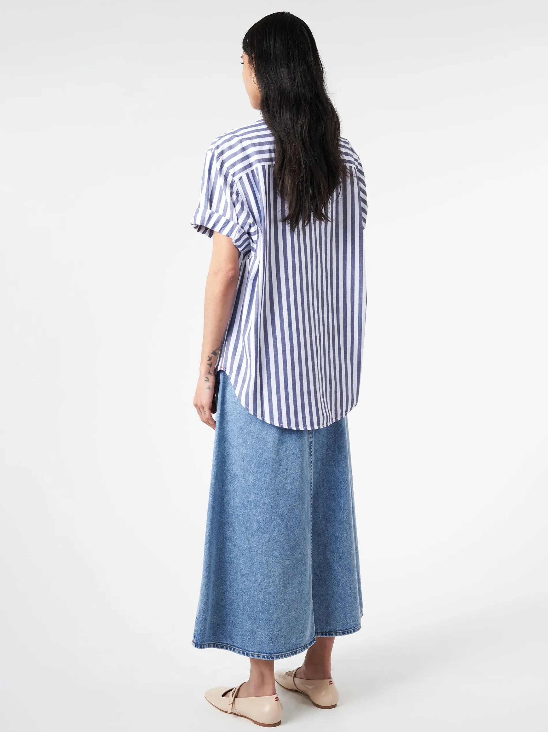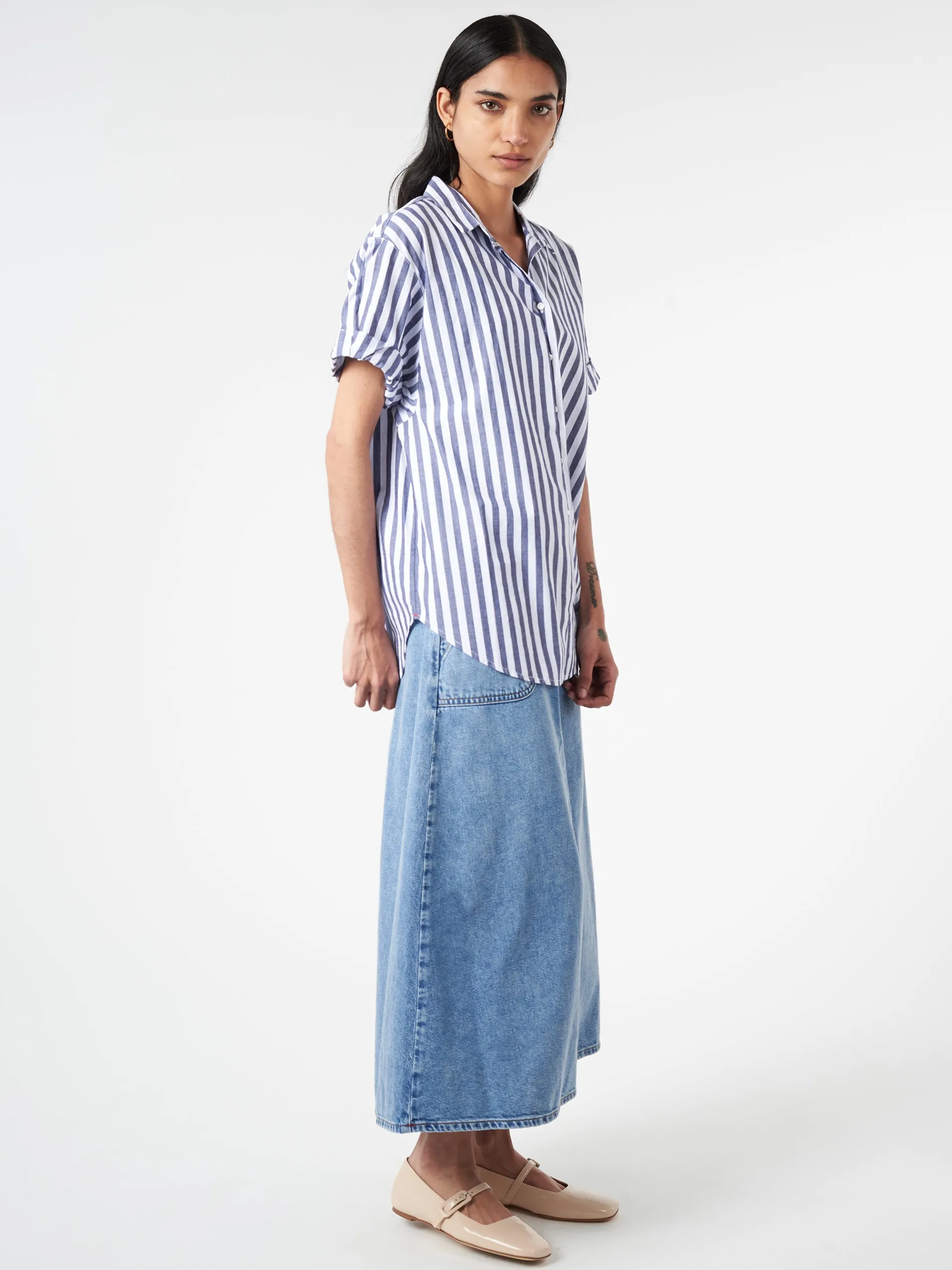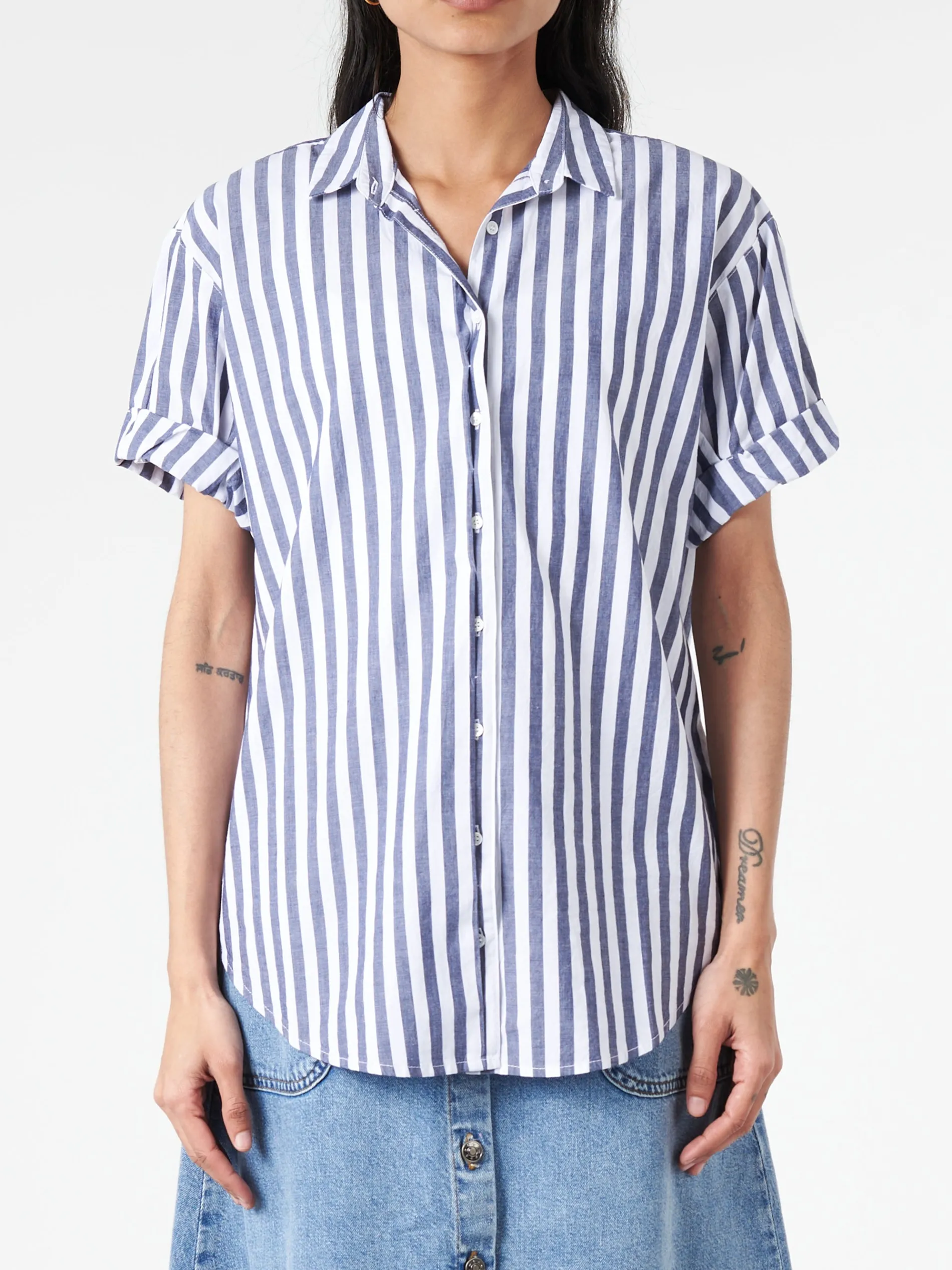 Channing is quintessential Xirena and an essential basic. Updated this season in 70s-inspired crisp cotton stripe, the Channing Shirt is a must-have season after season with its “boy meets girl” attitude.
