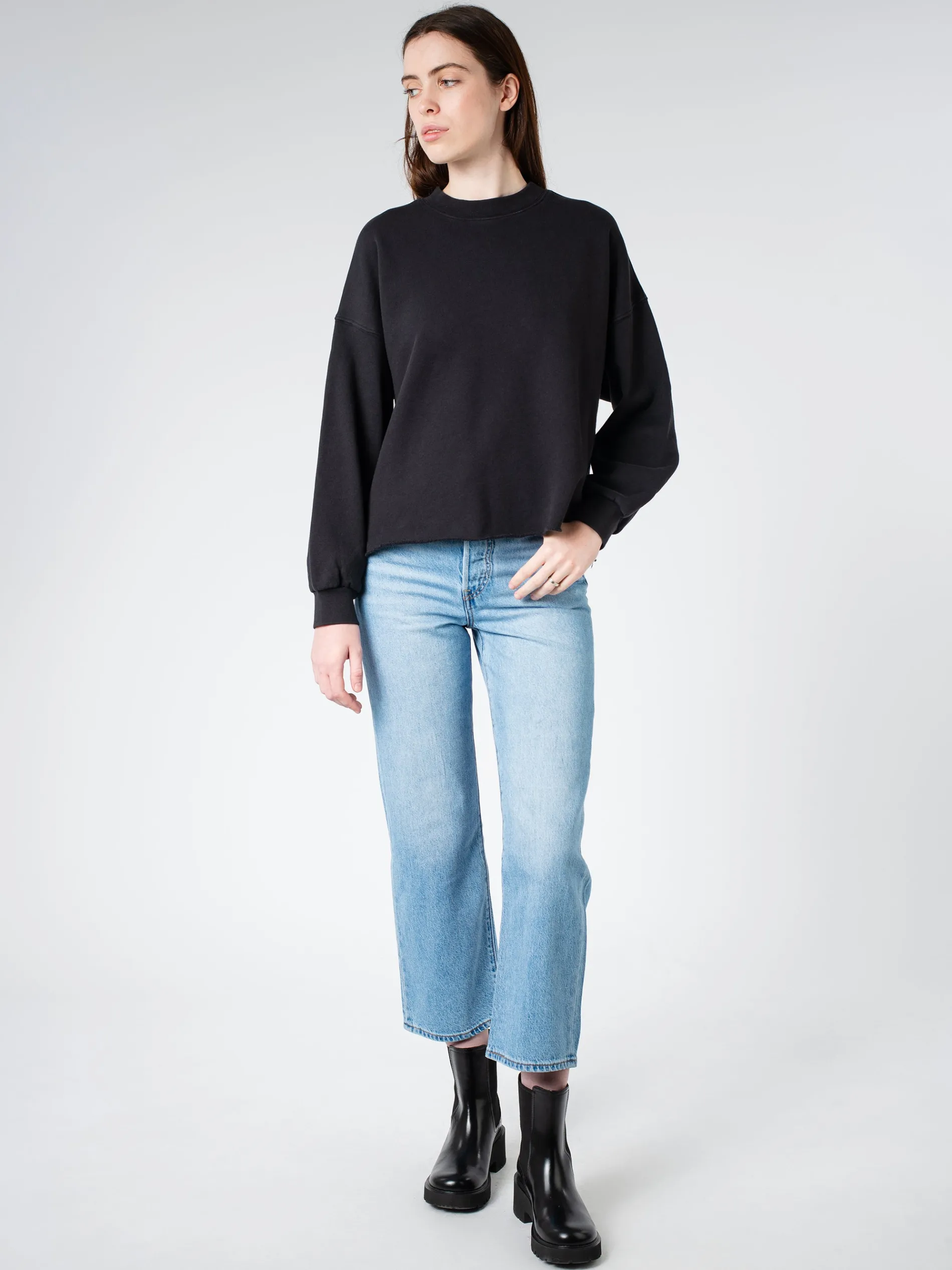 Xirena Honor with a slightly cropped raw hem done in ultra-soft brushed fleece. A sweatshirt ready for whatever the day brings.