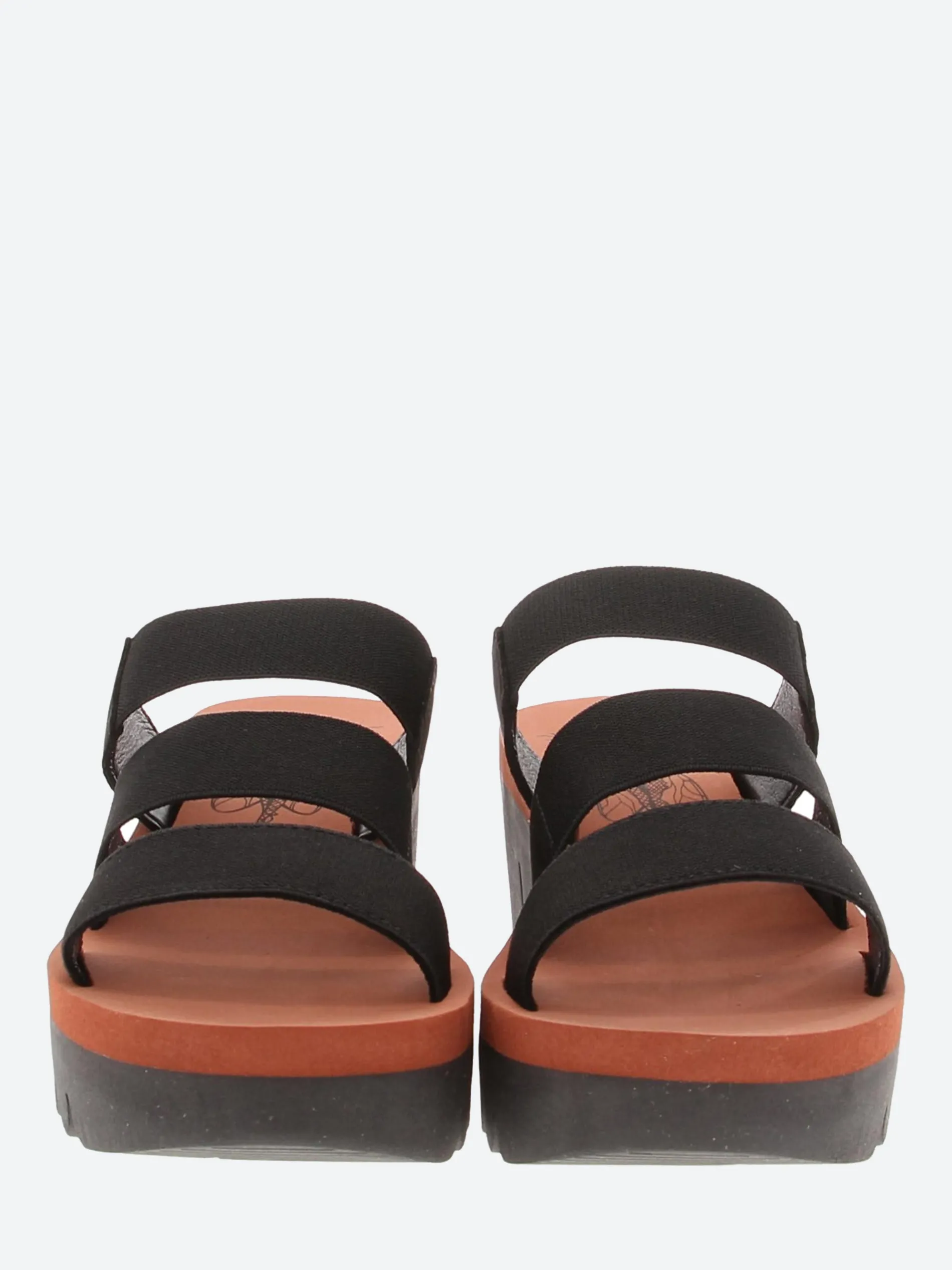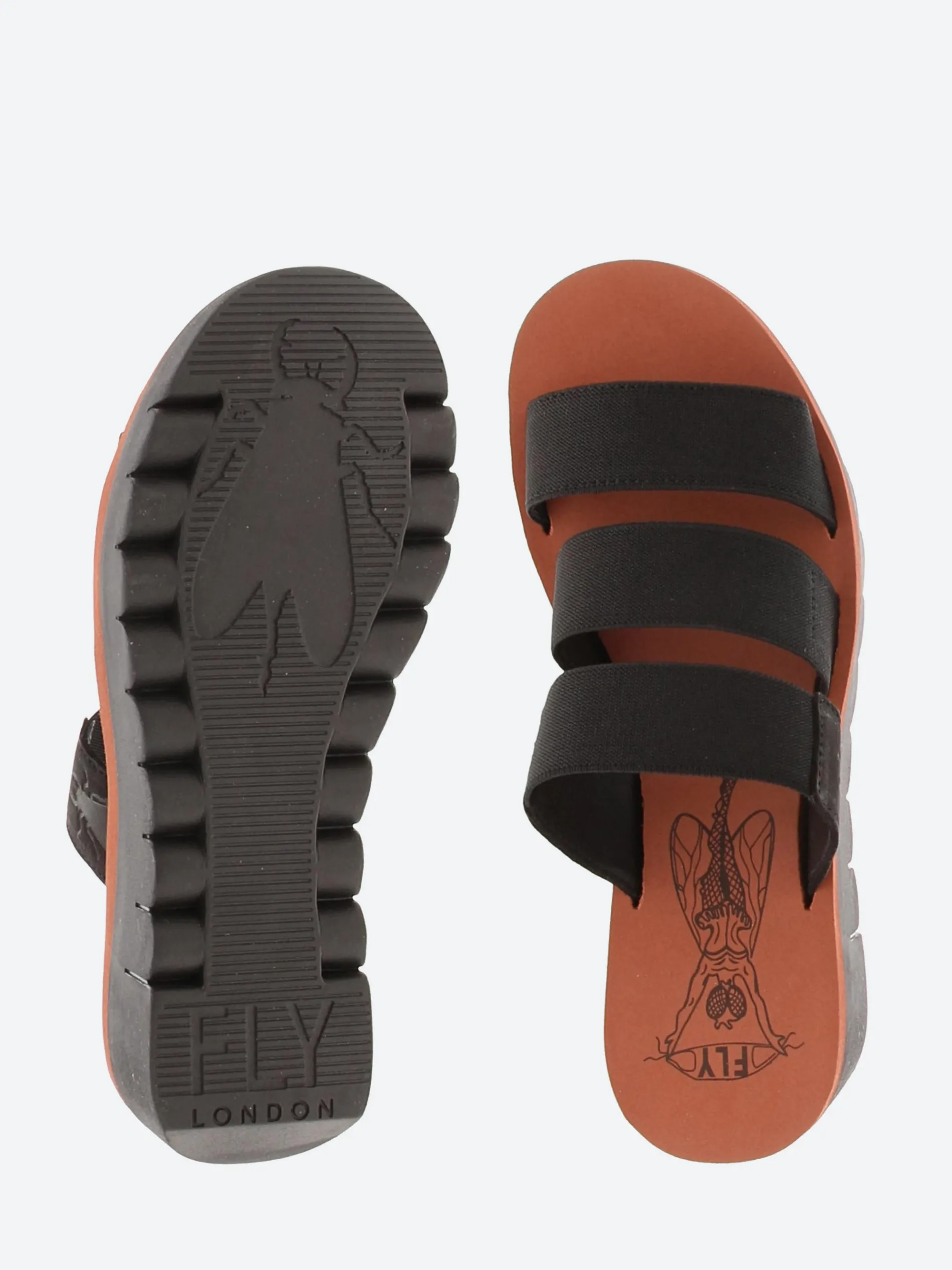 Fly London Yian elegant cupido wedge sandals with a sporty influence. The cushioned insole will keep you comfortable wherever you go.