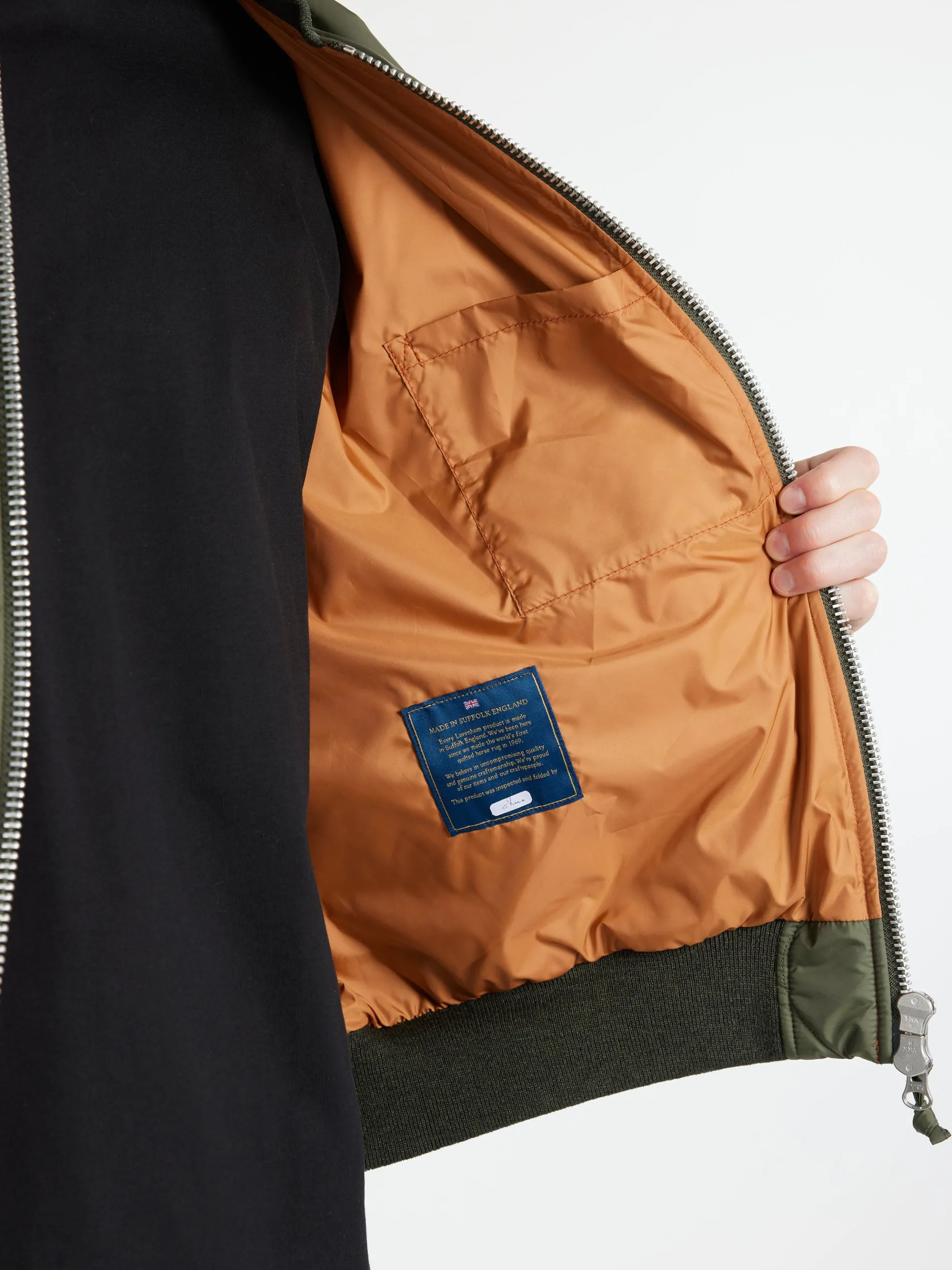 Lavenham x YMC bomber jacket made using 100% recycled polyester. Finished with onion quilting.