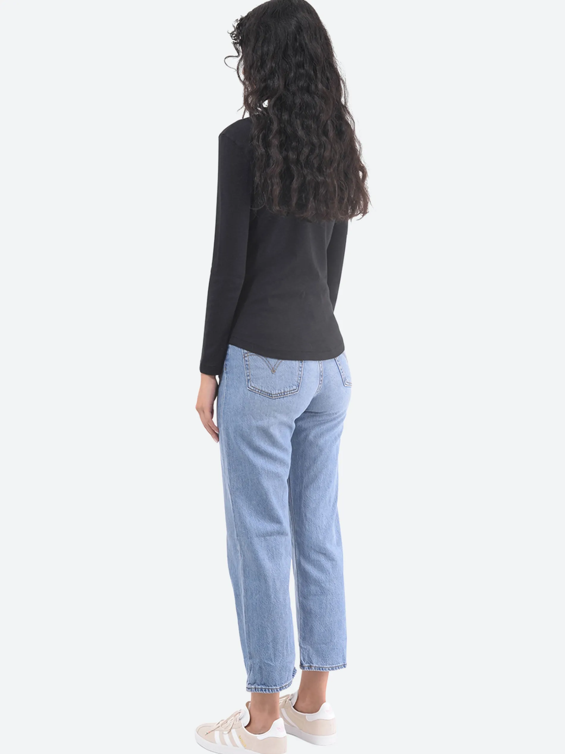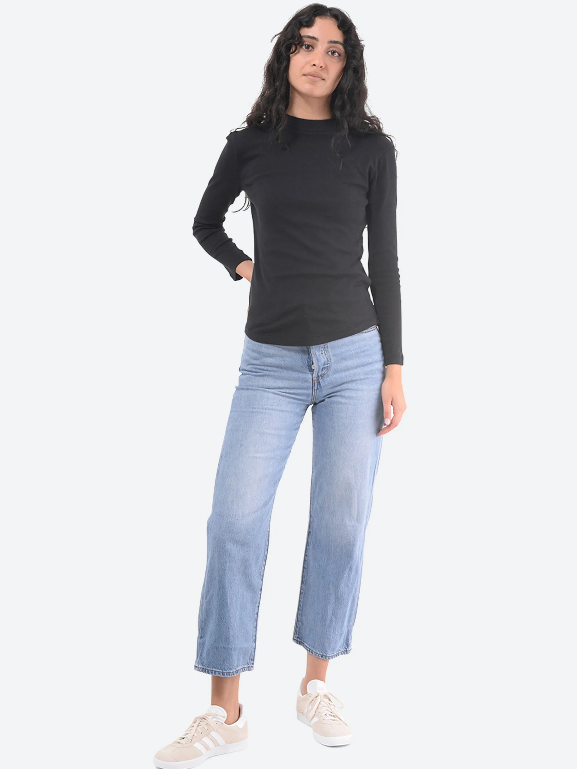 Fitted slub cotton long sleeve with a curved hem and semi-high neck.