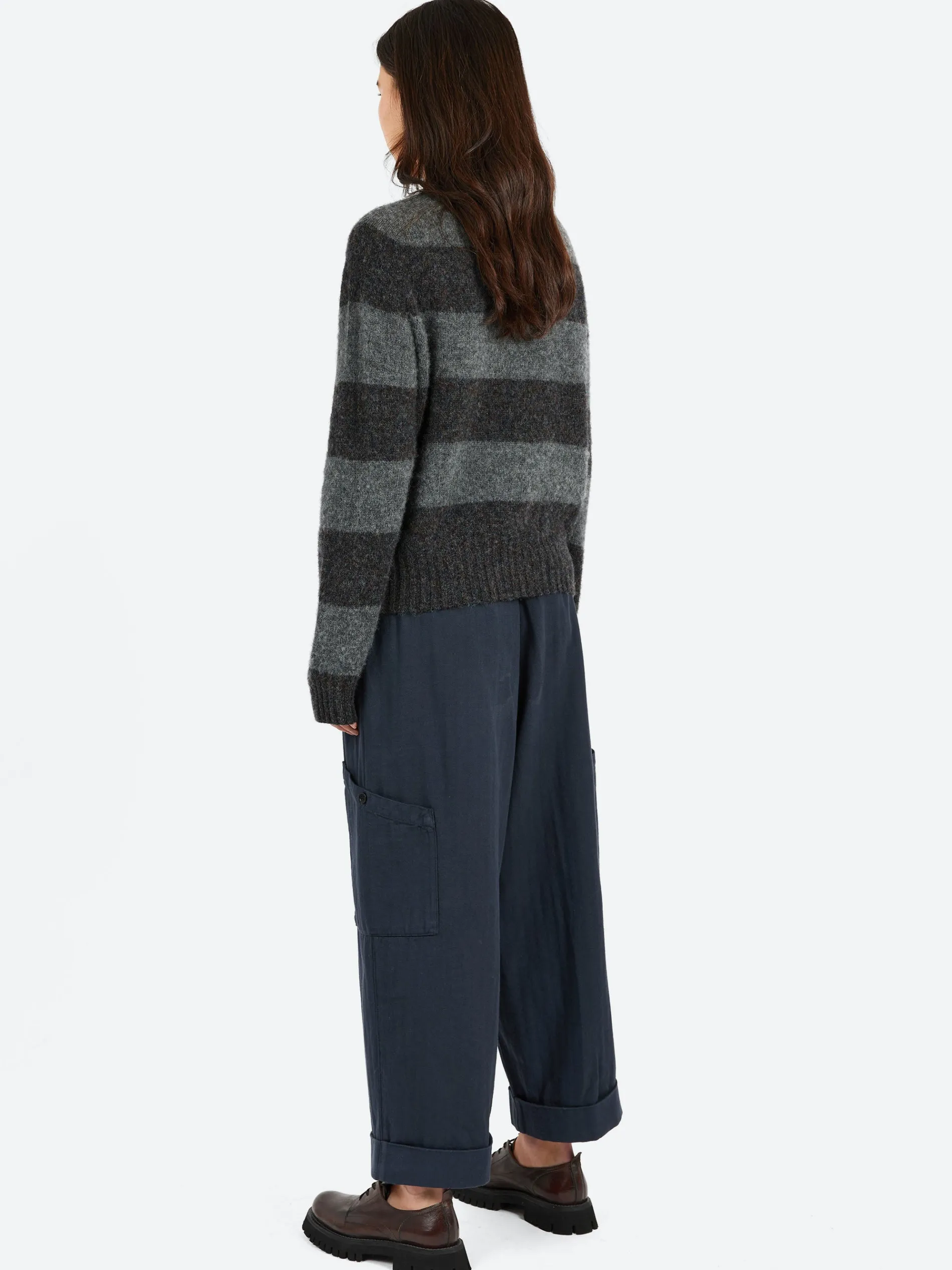 YMC knitted crew neck jumper made from brushed lambswool, offering a soft and cozy feel. The rib knit neck, cuffs, and hem add texture and structure, while the seam free construction enhances durability and ensures a smooth finish.