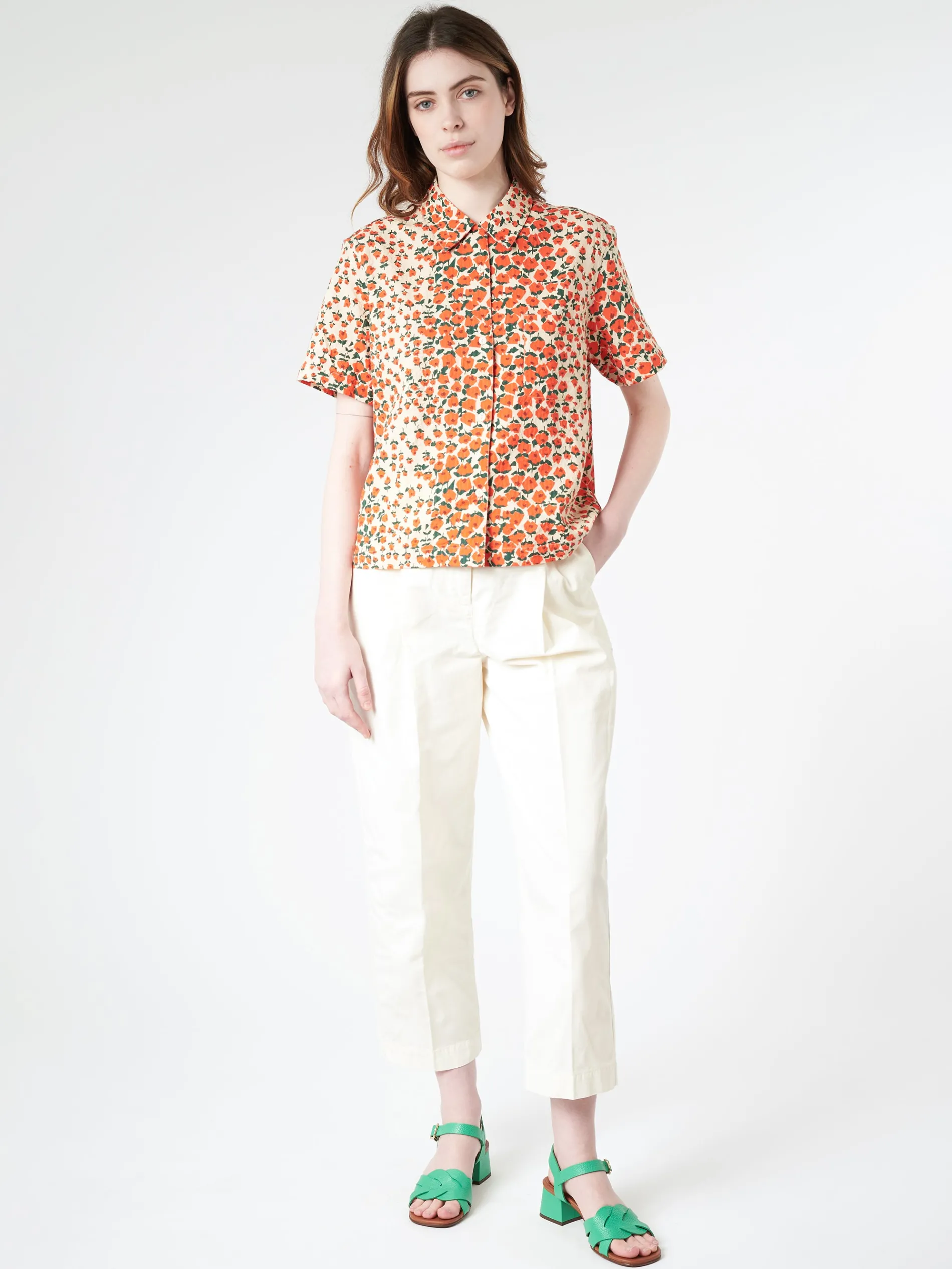 High-waisted cropped trouser in garment dyed cotton.